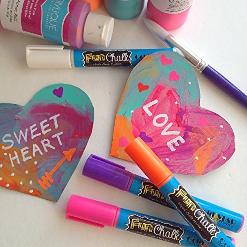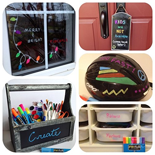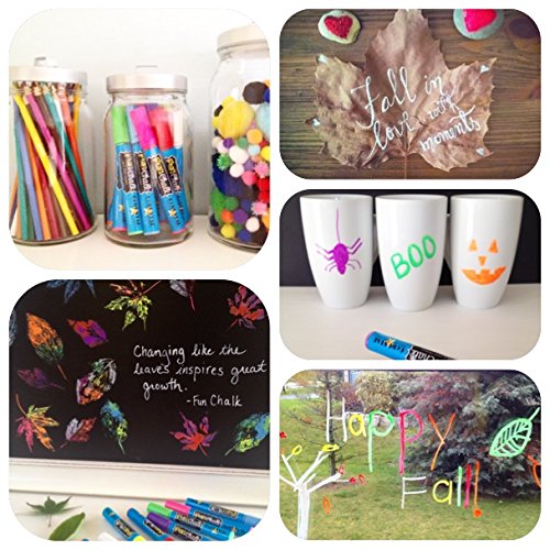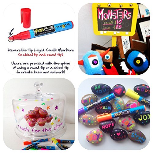 PREMIUM INK - Chalk markers from Fun Chalk feature a 6 mm Unique Reversible Tip that allows users to use both broad tip chalk markers and chalk markers fine tip in 8 Fluorescent Colors that WILL NOT Drip, Smudge, or Fade. Great window markers.