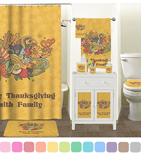 Happy Thanksgiving is a retro classic design with all the fall and thanksgiving elements. The background is two tones of leaves on a gold background and it features a hand drawn montage / collage of thanksgiving elements. We chose a retro font and personalized it with "Happy Thanksgiving" and "Smith Family" in a fall / thanksgiving dark brown from our fall/thanksgiving color palette.