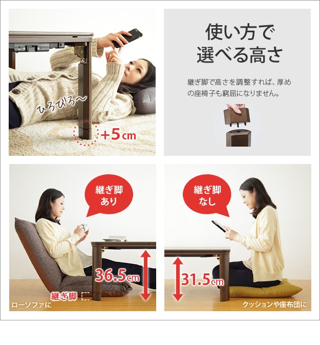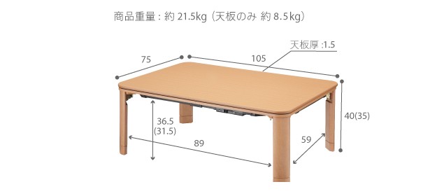 サイズ:幅105x奥行75x高さ40cm(35+継ぎ脚5cm)・約21.5kg