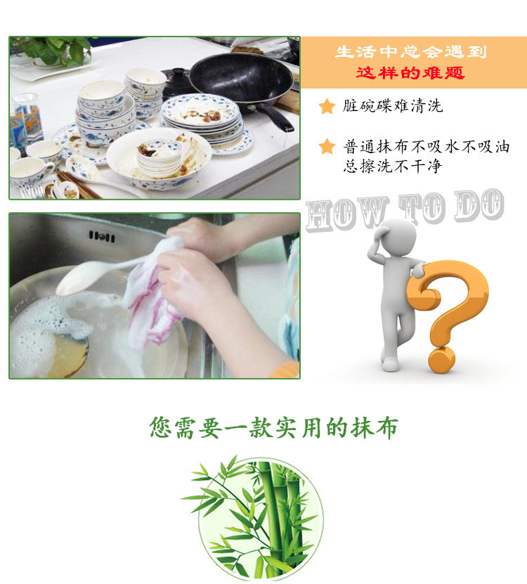 竹纤维洗碗布不沾油加厚厨房抹布刷碗布不掉毛家用洗碗巾