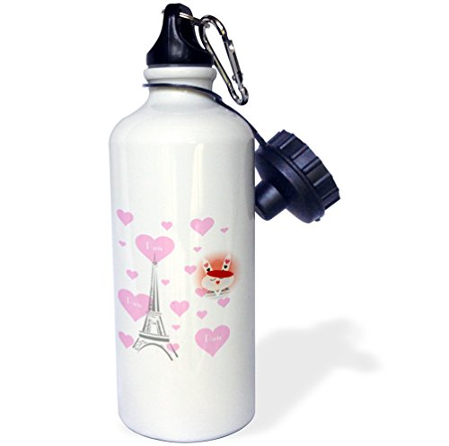3dRose wb_161205_1 French Bunny Surrounded by Hearts and Eiffel Tower Sports Water Bottle, 21 oz, White
