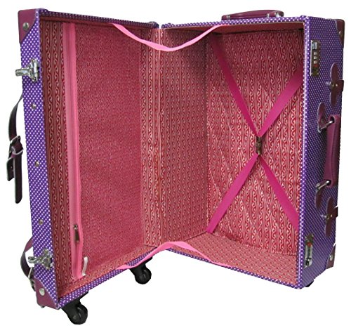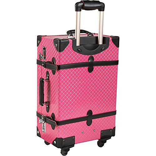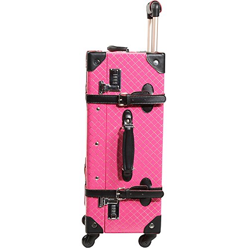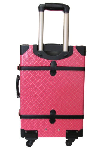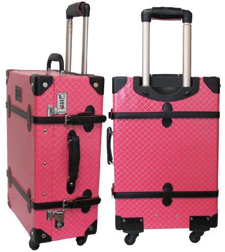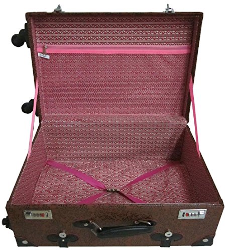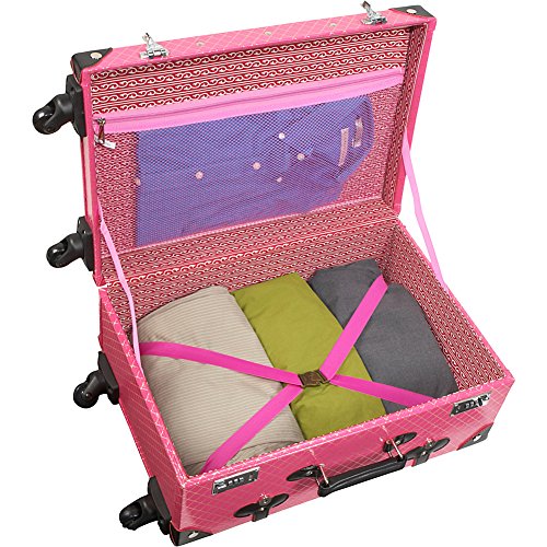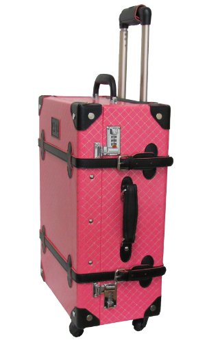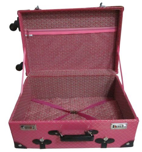 Studio : AmeriLeather Publisher : AmeriLeather Product Description 81-1 Features: -Faux leather, MDF wood construction. -Old fashioned chest styled roller bag. -Interior cross straps to secure clothing. -One interior zip mesh pocket. -Fully lined interior. -Secures with combination locks. Exterior Color: -Pink. Lining Color: -Pink. Exterior Material: -Faux leather/Other. Dimensions: Overall Height - Top to Bottom: -23.75". Overall Width - Side to Side: -15.25". Overall Depth - Front to Back: -9". Overall Product Weight: -10.25 lbs. 0
