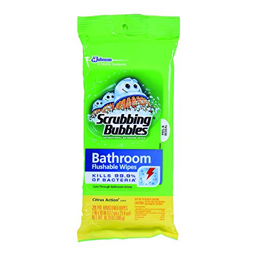 Diversey CB706141 Scrubbing Bubbles Antibacterial Bathroom Wipes, Citrus Action Scent, Flat Pack (Pack of 12)