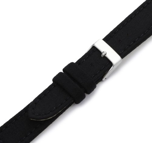 Amazon.com This watch strap is made using a Genuine "Cordura" Top Materials. Yes, Genuine Cordura, the same material used by our United States Army Troops on their Backpacks, Boots and Outerwear! Cordura wears 100x longer than regular canvas materials and is lighter in weight. The Lining Leather is a 100% Hypo-Allergenic and 100% Waterproof Lorica Lining Leather. The construction is Fully Turned Edge Top Material with Stitching. The Buckle is a 100% Hypo-Allergenic Stainless Steel. The length is 120x80mm which is a Men's Regular Length. The Band measures 18mm at the lug end that attaches to the watch and tapers to 16mm at the buckle end. The Color is Black with Matching Black Stitching. 0