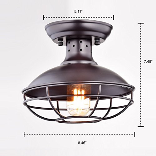ETL Listed, Mini Metal Cage Ceiling Lighting Fixtures, Bulb NOT included, please note that due to different devices there might be color differences.Semi Flush Mount Pendant Ceiling Light, Color: Oil Rubbed BronzeMeasures 8.46 inches in Diameter, 7.48 inches in Height, Weighs 2.5 Pounds Hard-wired, Base E26 (BULB NOT INCLUDED), Type of Bulb: Incandescent or LEDPurchase with confidence! Under FBA, prompt shipping, free replacement!