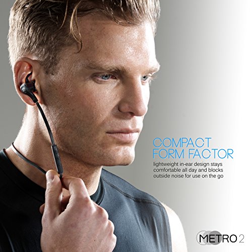 Untether yourself from your smartphone or tablet for full freedom of movement, hands-free phone calls, and premium audio with the featherweight Air-Fi Metro2 by MEE audio (formerly MEElectronics). Engineered to rival the sound of wired earphones, the Metro2 utilizes aptX technology for the highest quality wireless audio streaming, delivering stunning full-range sound with crystal clarity and bass that is rich, yet balanced. The lightest stereo wireless headset in the world at just 0.4 ounces, the Metro2 offers all-day comfort with flexible ear fittings that keep it securely in place. The noise-Isolating in-ear design keeps your media in and external noise – out. Built-in microphone and remote let you get the most out of your smartphone or tablet for music, movies, audiobooks, phone calls, and more.