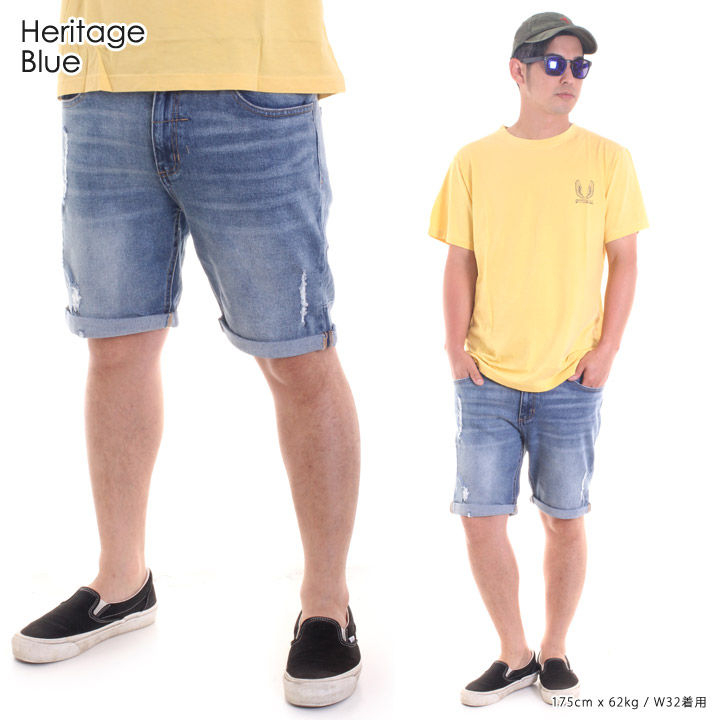 絶妙なアタリとヒゲ加工で気取らない大人サーフスタイルが楽しめるデニムショーツ。スリムでシルエットも良好ながらバツグンのストレッチ性で着用のストレスを感じさせない高い着用感もオススメポイントです。※裾のロールアップは縫い付けてありますので伸ばせません。