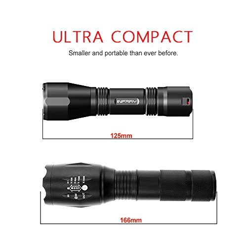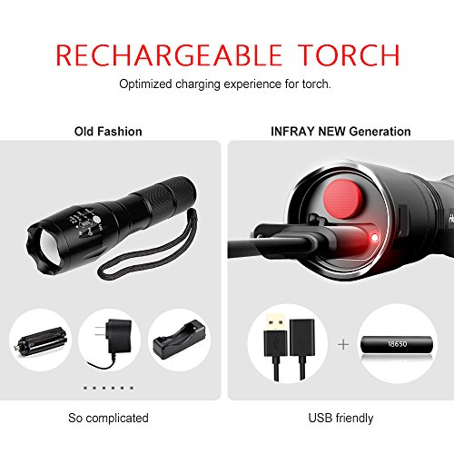 - WHAT YOU GET: INFRAY genuinely LED Rechargeable Torch with lanyard and our worry-free 18-month warranty. We would like to establish a sense of trust with our customer by high-quality product and after-sales service.