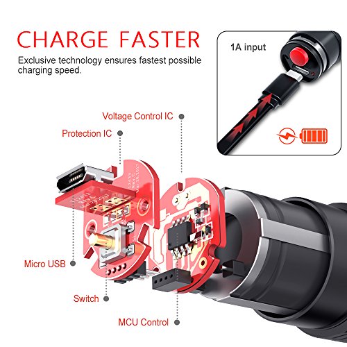 - LONG-LASTING: Up to 120 hours (Low-beam mode) of powerful, non-diminishing brightness from the included premium rechargeable 18650 battery. LEDs boast an extended 80000-hour lifespan. Recharge in 6 hours with a 5V 1A adapter (not included) and the included Micro USB cable.