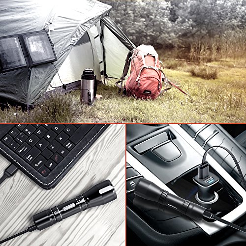 [Rechargeable] INFRAY 800 lumens LED Flashlight, Small Torch, Super Bright CREE LED, Zoomable Flash light with Built-in 18650 Battery, IP65 Water Resistant, 5 Modes (Camping, Hiking and Emergency Use)