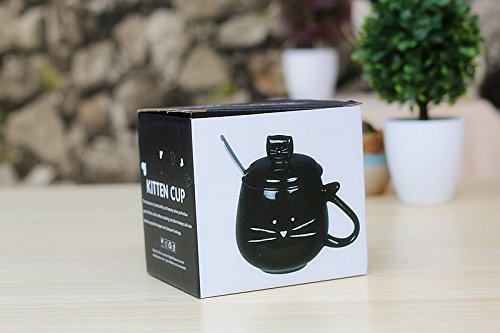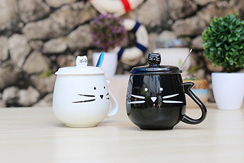 Ceramic Kitty Kitten Cat Couple Matching Mug for Coffee Water Juice Tea Drink Cup (Black With Lid)