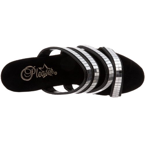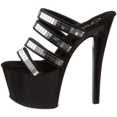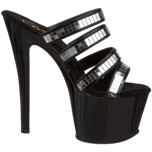 Amazon.com You're sure to adore this Sky-high sensation from Pleasers. With its ultra-tall platform, tantalizing heel, and racy, mirrored finish, this sandal is leg lengthening and attention grabbing in all the right ways. 0