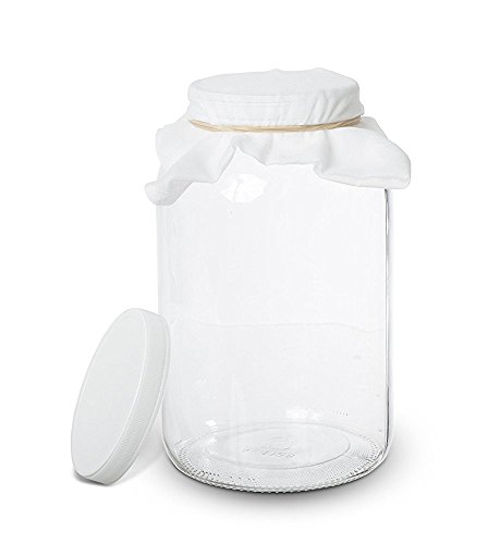 1 Gallon Glass Kombucha Jar - Home Brewing and Fermenting Kit with Cheesecloth Filter, Rubber Band and Plastic Lid - By Kitchentoolz