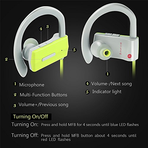 Bluetooth Headphones, UBYMI U1 Best Wireless Sports Earphones w/ Mic IPX7 Waterproof HD Stereo Sweatproof Earbuds for Gym Running Workout 8 Hour Battery Noise Cancelling Headsets (Green)