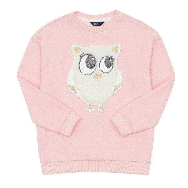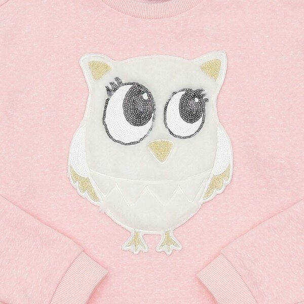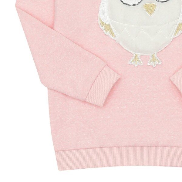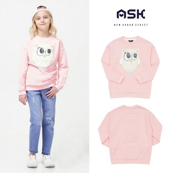 스노우얀 소재의 핑크컬러 맨투맨 티셔츠 입니다. 부엉이 자수 아플리케로 걸리쉬함을 강조한 스타일로 간절기에 입기 좋은 아이템입니다.