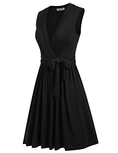 V neck, Sleeveless, wrap style, with belt, pleated waist