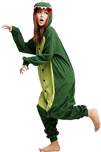 Product Description These Dinosaur adult animal onesie pajama costume (also called Kigurumi) are made of a super soft polar fleece material and feature pockets and a zipper "butt flap" that allows using the rest room easily, and soft hoodie. They are great as pjs for sleepwear, lounging around the house, cosplay, or as an adult animal costume or halloween costume. 0