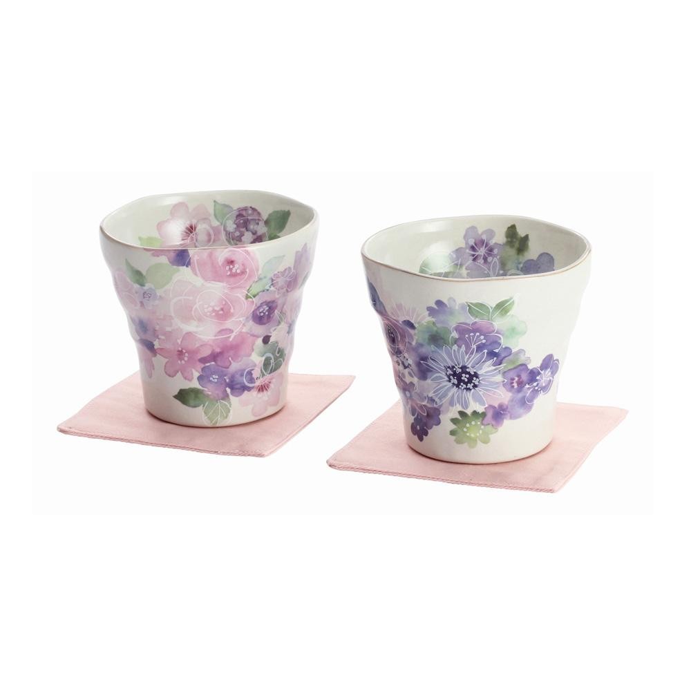 大小様々な花が織成す、上品な花柄の花工房。ピンクとブルーのペアロックカップセットです。 |