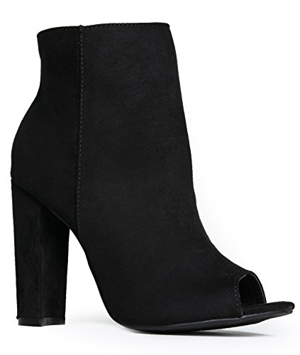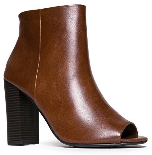 Peep Toe High Heel Boot - Sleek Leather Ankle Bootie - Classic Zip Up Boot - Easy Essential Eve...