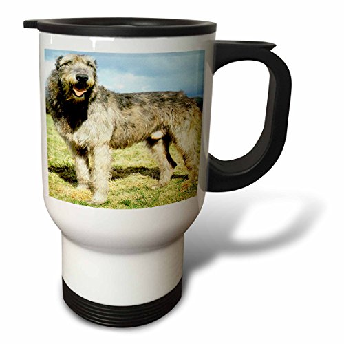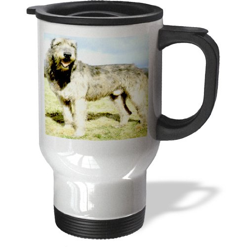 Studio : 3E Rose (Kitchen) Publisher : 3E Rose (Kitchen) Binding : Kitchen Product Description Irish Wolfhound Travel Mug is a great way to take your favorite hot or cold drink along. With a tapered bottom this stylish 14oz mug fits in a standard cup holder and features an easy-grip handle with thumb rest, slide opening lid and slanted drinking surface. This travel mug is made of stainless steel. Not microwave safe, hand washing is recommended. 0