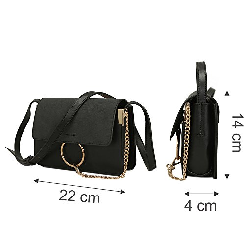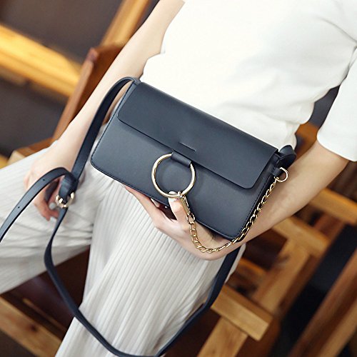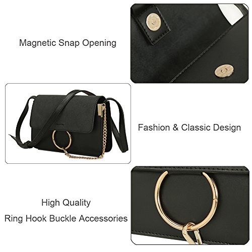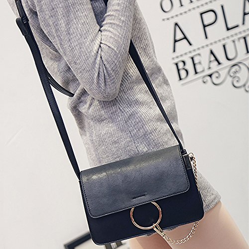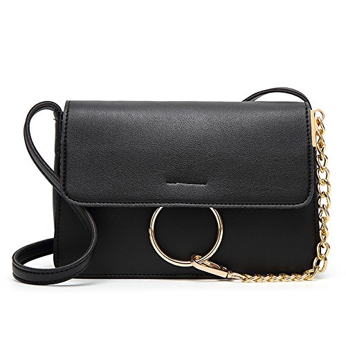 Lacheln Women Crossbody Handbag Clutch Ladies PU Leather Shoulder Bags with Metal Chain Ring