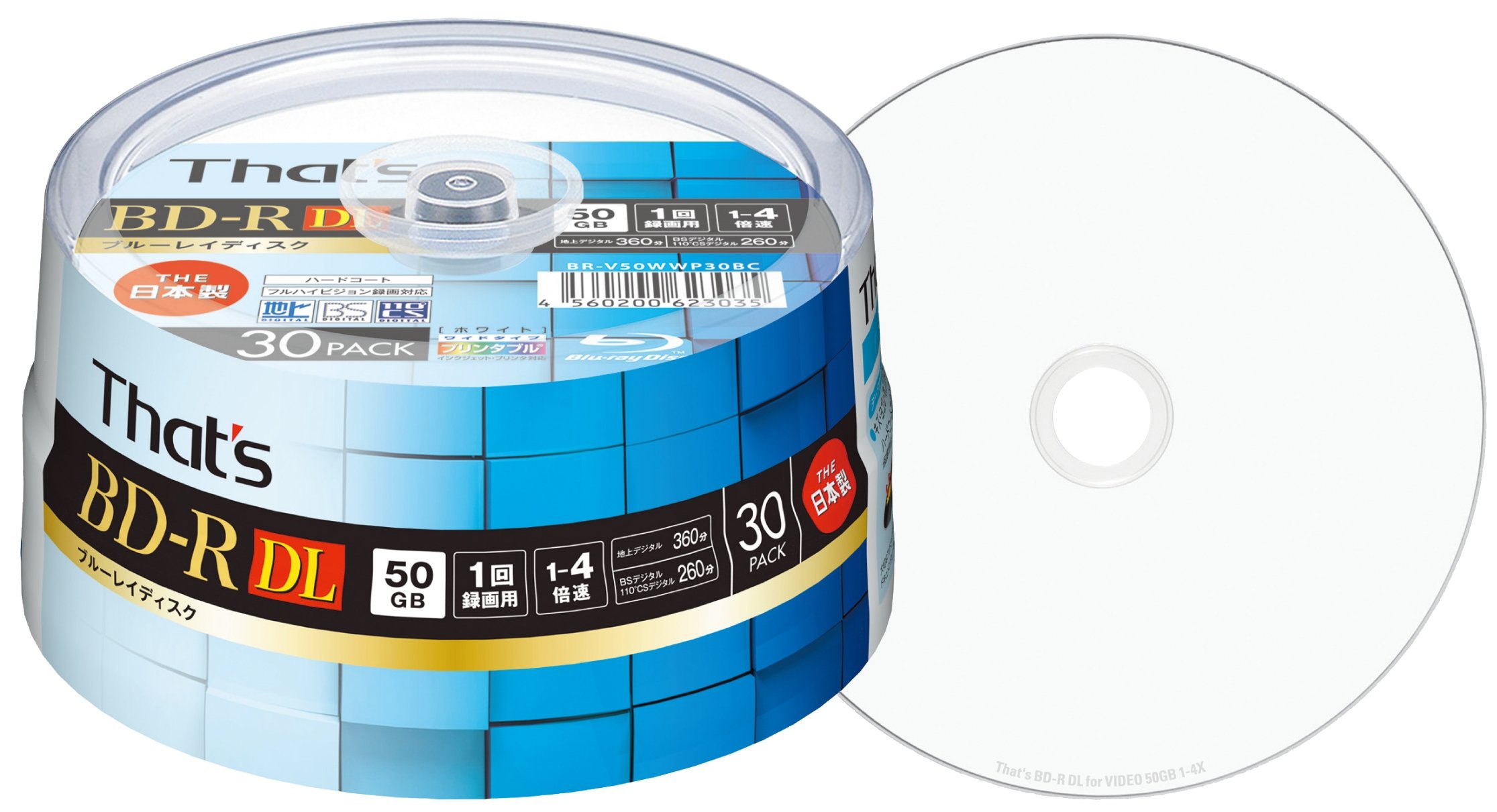 Blu-ray disc BD-r DL video for 1-4 x 360 / 50 GB Japan-made dual-layer hard wide printable white spindle case 30 pieces BR-V50WWP30BC