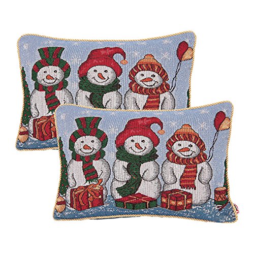 Queenie - 2 Pcs Christmas Series II Tapestry Decorative Pillowcase Cushion Cover Throw Pillow Case with Cord 13 X 17.75 Inch (33 X 45 Cm), Set of 2 (2 Snowmen)