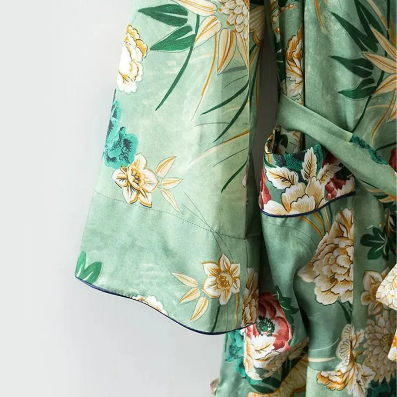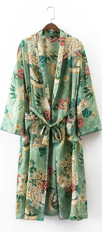 Gender:Women Item Type:Robes Sleeve Length(cm):Full Season:Summer Material:Polyester,Rayon Dresses Length:Mid-Calf Fabric Type:Poplin Brand Name:OKXGNZ Model Number:Spring and summer women Nightgown Material Composition:Polyester Rayon Pattern Type:Print