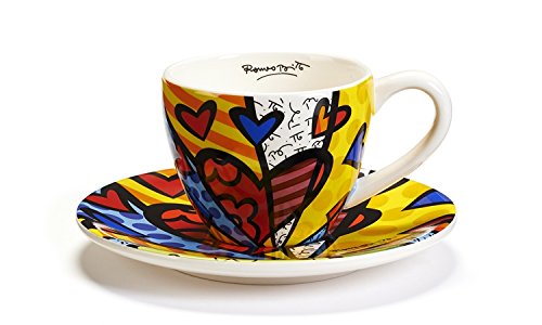 -. Title : Romero Britto Teacup and Saucer Set, A New Day Design