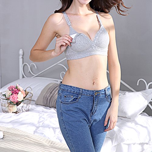-. Feature : Size runs small. We sest you to select larger size, for more comfort / Double Protection: Dual layers with easy discrete nursing clasp for convenient breast-feeding, one-handed access / Unique Design: Wireless and seamless bralette, comfortable to wear and will not leave marks even long time wearing / Flexibility: Adjustable shoulder straps and stretchy material, flexible to support size changes of nursing breasts / Skin-Friendly: Made of 95% cotton and 5% spandex, soft and breathable for sensitive breasts, comfortable to wear