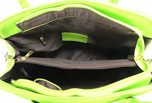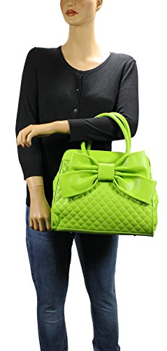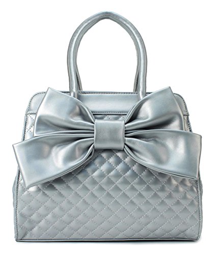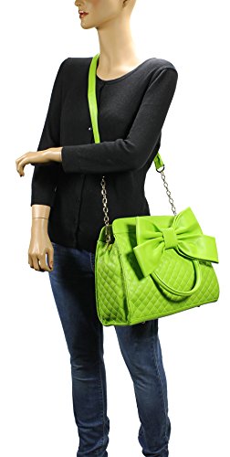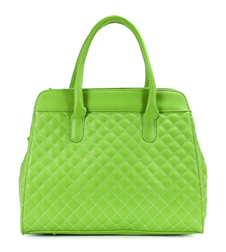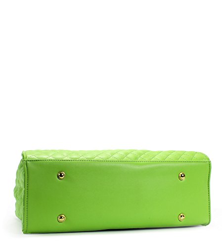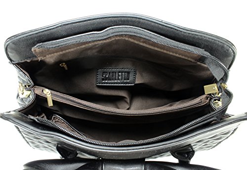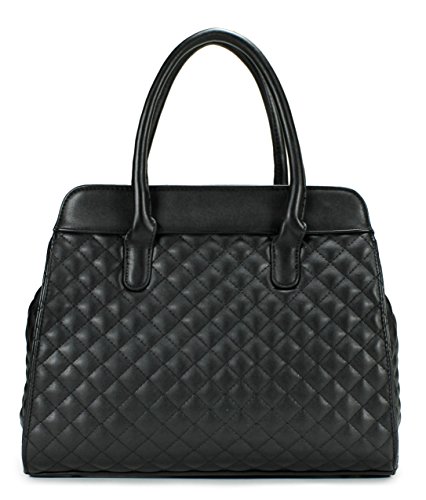 -. Feature : Synthetic with fabric lining.Quilted synthetic leather with fabric lining. Top zipper closure. Bottom metal feet. / Removable and adjustable chain shoulder strap drops 20". Two 5" rolled handles. / Interior cell phone pocket, multifunctional slip and 2 zipper pockets. / Comfortably holds an iPad Mini or a tablet 8.5"x 6"x1" and under. / Size: 12"x10"x5"
