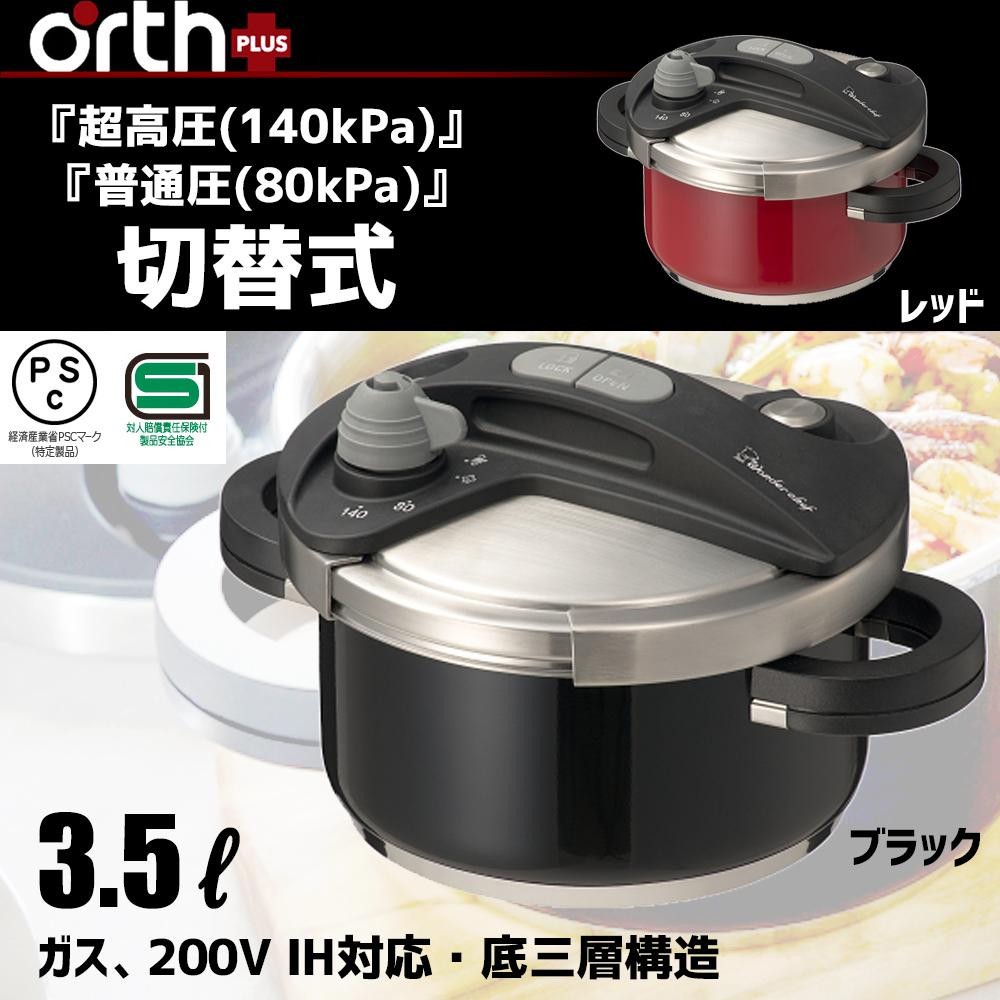 | 仕様 | 作動圧:超高圧/140kPa、普通圧/80kPa 調理温度:超高圧/約126度、普通圧/約117度 対応熱源:ガス火、IH(電磁調理器)200V 水の容量:最高水位線/約2.3L、豆類線/約1.1L 白米最大炊量:約4合 大豆最大煮量:約350g 食洗機:使用不可 底三層構造 |