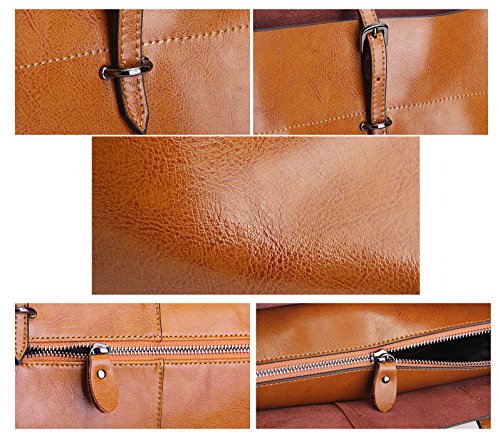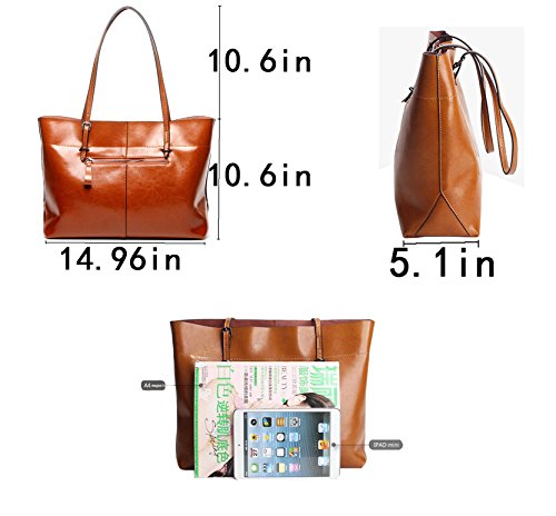 -. Feature : Material:High quality genuine cowhide, solid color, Not easy to fade. Soft, Delicate, Durable. / Dimensions:33cm*15cm*25cm/13.0"*5.9"*9.8"(L*W*H), Handle length:15cm/5.9",with an adjustable strap 125cm/49.2". / Practical Internal Structure:A main big compartment, roomy interanl has a detachable zipper pocket,with one buckle in both side. Three small pouches in the detachable pocket, two in a side, another zipper one in the other side. Keeping wallets, umbrella, iPad, mobile phones, planner, pens, coin purse and other daily essentials well organized. / Exquisite details and Quality hardware:Thicker handle, solid and strong bearing capacity. Perfect tailoring, locomotive alignment. High-grade zipper, feeling smooth, improving the grade. High quality hardware zipper closure, using steel ion plating polishing, preventing belongs from falling out. Adjustable shoulder strap, making your more comfortable when handing. With four rivets in the bottom,durable and wearable, preventing the bottom cortical wear effectively. / Perfect for all occations:Working,shopping, daily life, traveling,school and business, etc. A great gift to your friends and family. Suit for all seasons, never out of style. Upgrade your femine elegance.