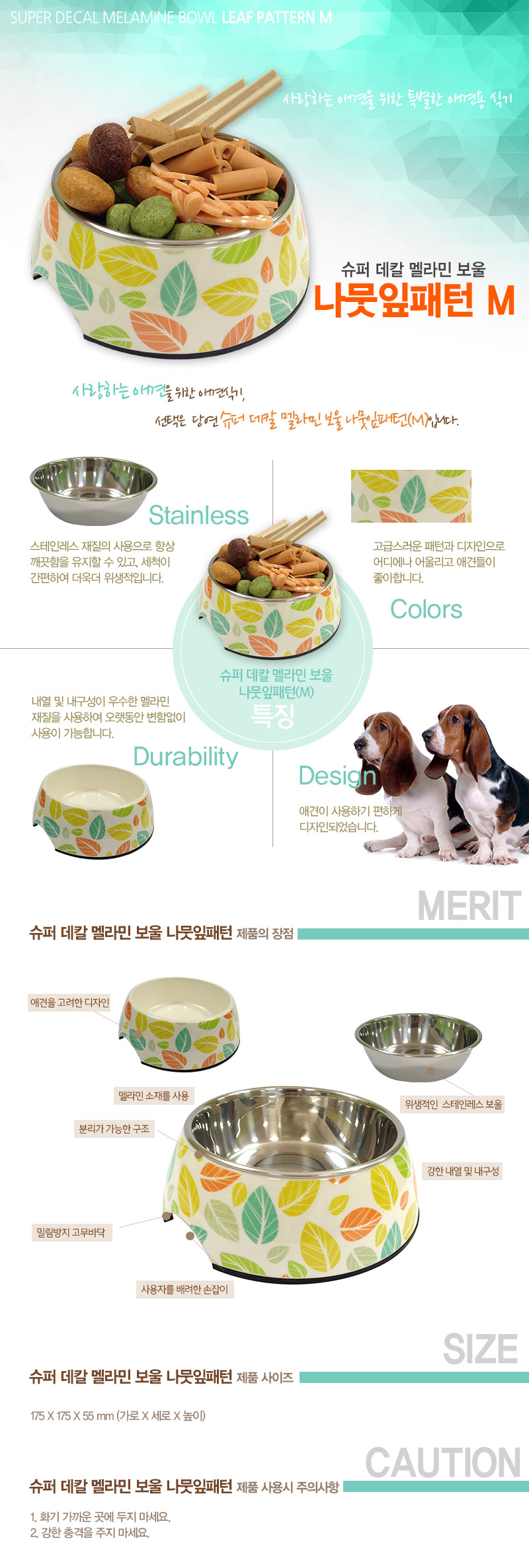 Decal Melamine Bowl M Leaves Dog Bowl Dog Dish Stainless Steel Cat Rice Super