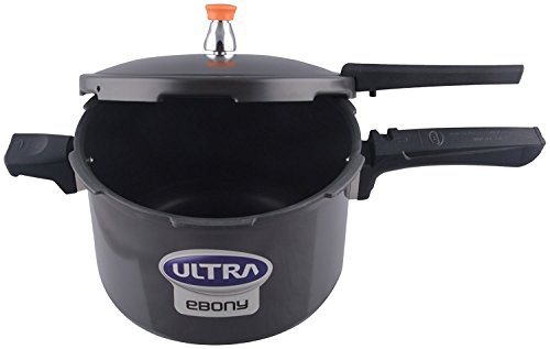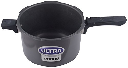 Ebony 6.5L has soft grip rubberized Bakelite handles for pain-free grip. It is also Eco friendly, water proof and long lasting. It has a satin finish and comes with Bakelite handles with twin screws to avoid loosening. Hard anodizing makes it scratch,stain resistant.