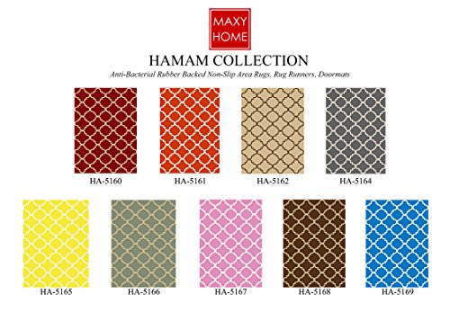Maxy Home`s stylish rugs of the Hamam Collection are the ideal solution for high-traffic areas and slippery floors with their anti-slip, non-skid rubber backing to prevent slips and falls. Its stain-resistant material can easily be vacuumed or spot-cleaned with mild soap. Anti-Bacterial material adds extra comfort and safety as well. Its fancy, modern, stylish, contemporary designs make it even more attractive for your indoor/outdoor -interior/exterior usage such as patio entryways, door entrances, kitchen, bathroom, bedroom, living room, etc. Maxy Home`s Hamam Collection doormats are low profile and thin provide a cozy touch feeling under your feet. More livable inside and outside spaces while you have a warm touch under your feet. Maxy Home`s Area Rug, Rug Runner and Door Mat collection comes in different sizes; 1x2, 2x5, 2x7, 3x5, 3x10, 5x7, 8x11, 10x13 with many designs and patterns in multi and various colors; Beige, Black, Blue, Brown, Green, Grey, Ivory, Orange, Pink, Purple, Red, Turquoise " Affordable & Fashionable Collections is a great way to tie a room together...or set a color theme throughout your home.!" Collections: - Bella Soft Shag Collection - Pasha Collection - Istanbul Collection. - Moderno & Sultan Collection - Ephes Collection. - Zahra Collection - Hamam Collection - Bambino Collection - Cucina Collection - Lush Collection Maxy Home provides satisfactory service for its customers by fulfilling their needs and desires to have a better environment, looks and image for their living spaces. Various collections, sizes, colors, patterns and designs with the option of customizations. MAXY HOME Maximize Your ComfortFeature