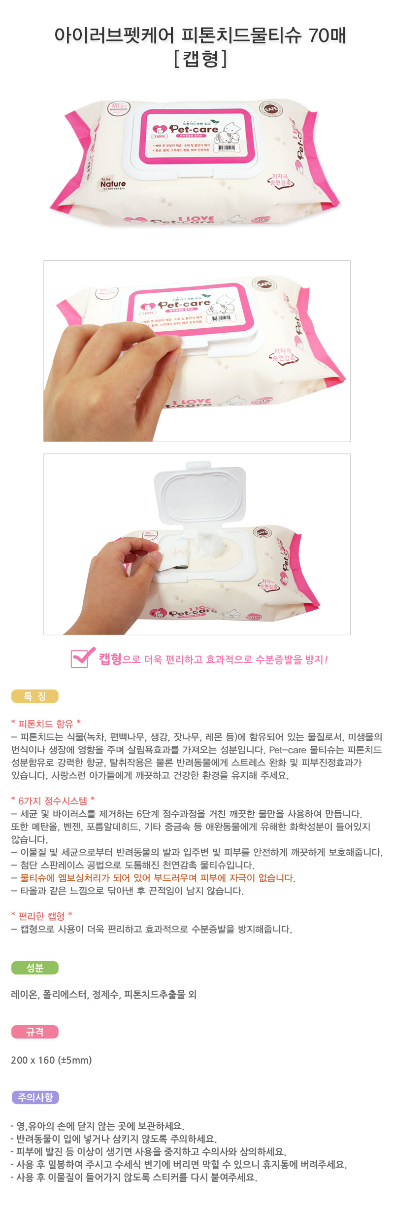 Cat Wet Tissue 70 Cap Cap Type × 12 Pcs Large Dog Pet Cleaning Sheet Hygiene Dog Phytoncide