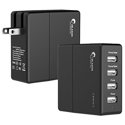 i-Blason 4 Port USB Travel Wall Charger Hub 34W with Smart Charge Technology for Apple iPhone 6, 6S, 6 Plus, iPad Air, Mini, iPod Touch, nano, most other phones and tablets (4 Ports)