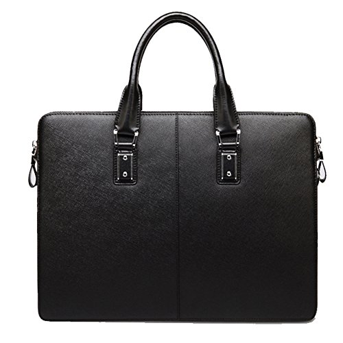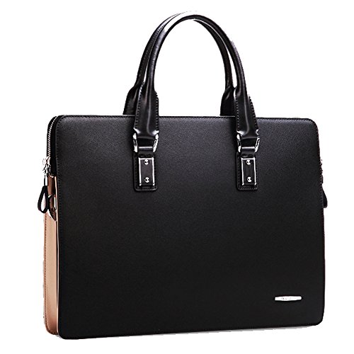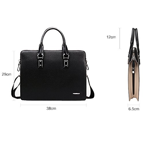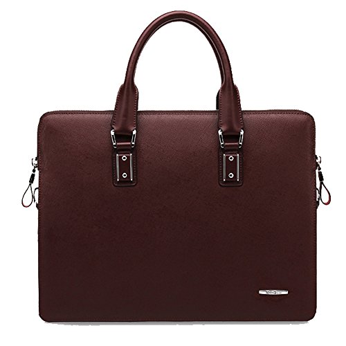 -. Feature : Outer Material: cowhide leather / Dimension 38W x 29 H x 6.5 D CM Weight: 1.3 kg / Natural gorgeous cowhide leather, double strong carry handles , long removable and adjustable shoulder strap, high quality hardware, tidy and neat stitch , classic design, all make this bag a perfect briefcase. / The bag is delicately designed, the high quality cowhide leather also makes it look much higher end. The interior is spacious and well organized, nicely lined with durable fabric. Inside there are two main compartments separated by a zipped sandwich bag in middle, capable of a 14-inch laptop, additionally, there is a zipped pocket for important belongings, one open pocket for iPad, two open pockets for wallet and mobile phone and two loops for pen. / This stylish bag may be a good choice as a briefcase, a work bag or a laptop case. The durable quality is excellent and the classic style is timeless, it promises all value for every penny you spend.