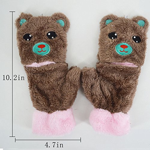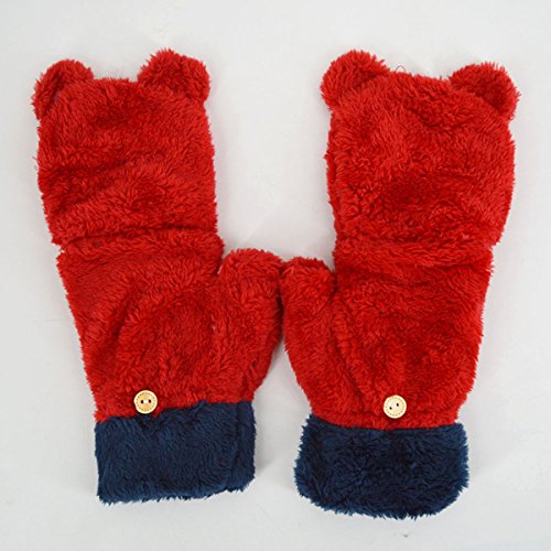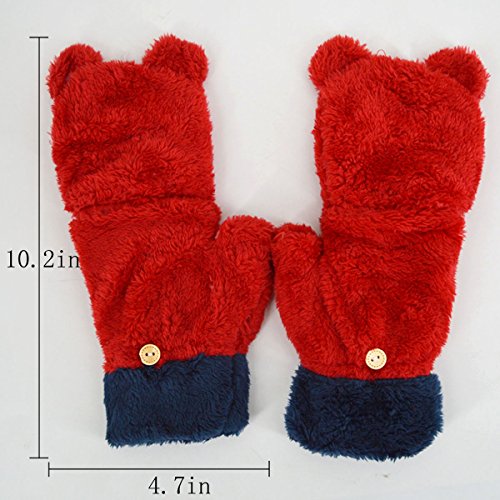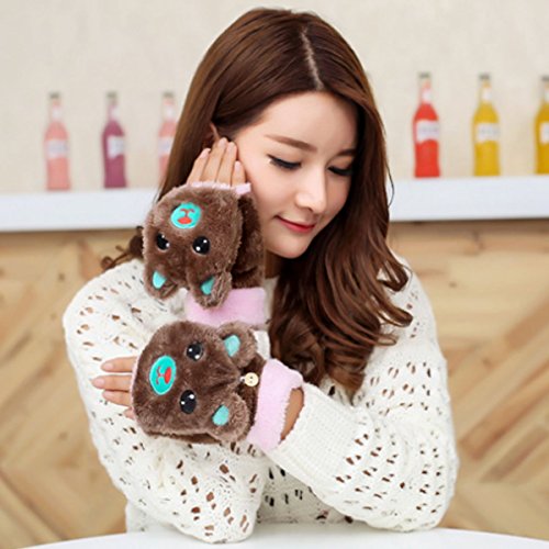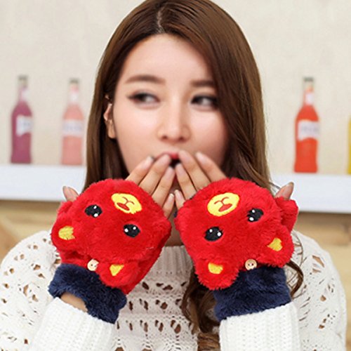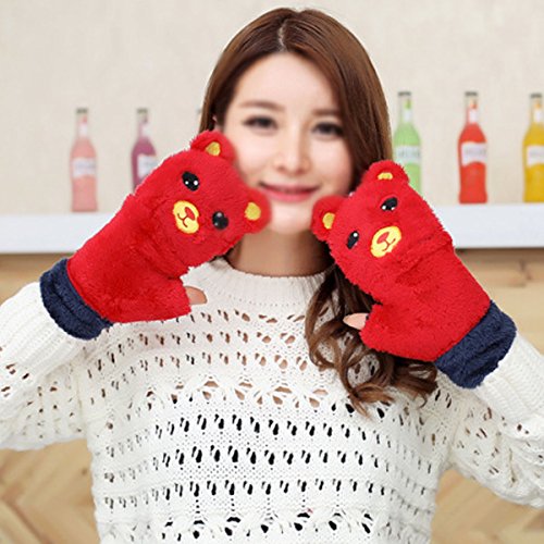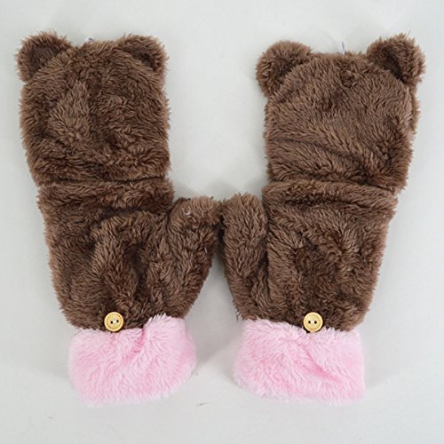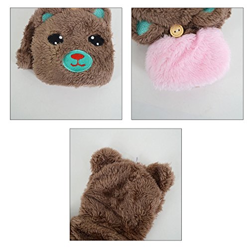 Dual functions women winter warm bear plush gloves,you can wear it as a fingerless gloves and you can also wear it with the cover to keep your finger warm. Flexible, skin-friendly, keep those tiny hands warm with these lovely and soft gloves with mitten cover. Great for Halloween parties, anime cosplay, pretend play, dress up and theatrical performances. Durable materials that you can use it again and again after being washed. Easily to open and close. Great for texting, typing and writing. This gloves are popular among young girls, wonderful and warm Holiday/Birthday/Xmas gifts for daughter, girlfriend, niece and other young friends and families.
