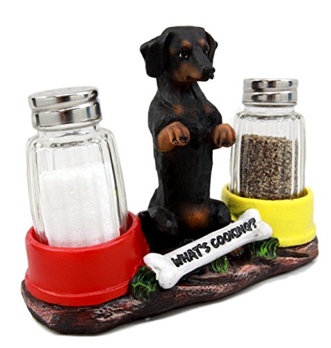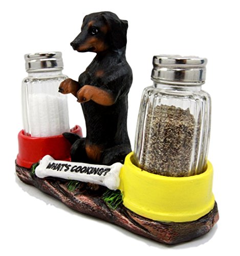 Atlantic Collectibles Adorable Black & Tan Dachshund Dog Decorative Glass Salt Pepper Shakers Holder Figurine Sausage Wiener Dog Collectible