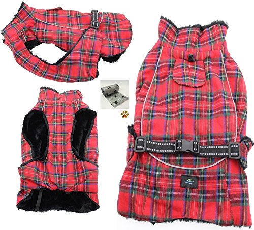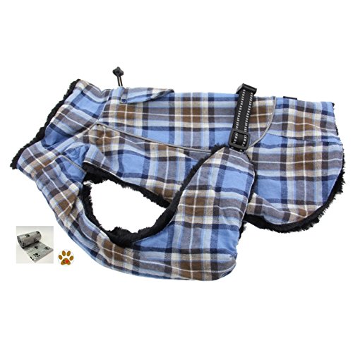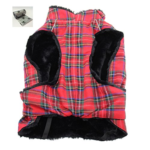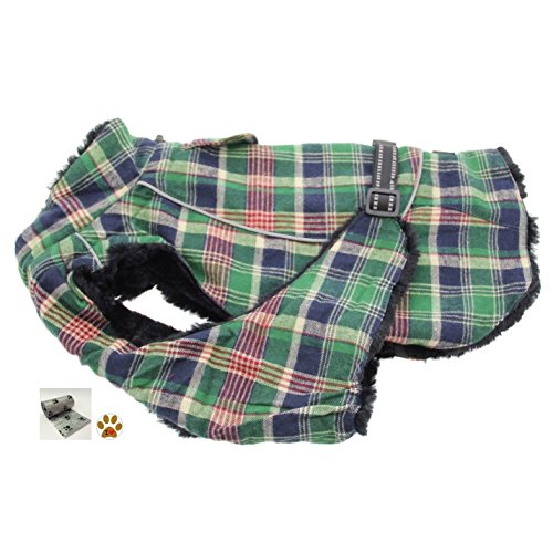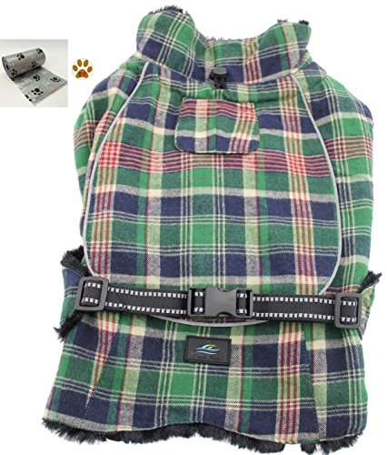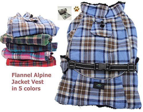 -. Feature : Alpine Cold Weather Flannel Plaid Fur Lined Pinned Dog Coat with Bags Set - Choice of 5 Colors - Available in Big and Small Dog Sizes - XS thru 5XL / Winter Weigthed Flannel Coat is made with a thick Flannel outer layer designed to keep most sized dogs, ranging from teacup dogs up to large dogs, warm and dry in cold weather conditions. Accessorized with one Paw themed button Pin and comes with one roll of clean up bags for quick pick ups on the go. / Lined with thick faux fur. The layers are designed with fiber fill for added warmth and protection. Adjustable straps, covered d-ring access hole, fur lined collar with neck cinch, and reflective night safety straps and trim. Leash is separate not included.. / Measure Pet According to Size Chart Shown. Fits most dog breeds, Big, Small or Toy Breeds, fitting sizes X-Small thru 5X-Large Pet Weight ranges approx. 3 to 120 Lbs max. / Color Choices: Blue/Brown Plaid, Raspberry Pink/Turquoise Plaid, Red/Green Plaid, Hunter Green/Navy Blue Plaid, or Turquoise/Navy Blue Plaid. Sizes