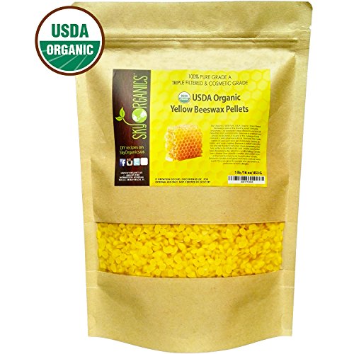 100% PURE USDA ORGANIC Certified Beeswax By Sky Organics - Premium Quality Cosmetic Grade Triple Filtered Grade A pellets-created under the strict organic guidelines set forth by the USDA - Created naturally by healthy honeybees in a NON-GMO, pesticide free environment