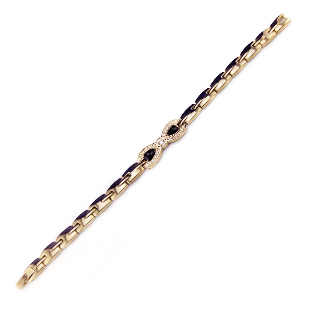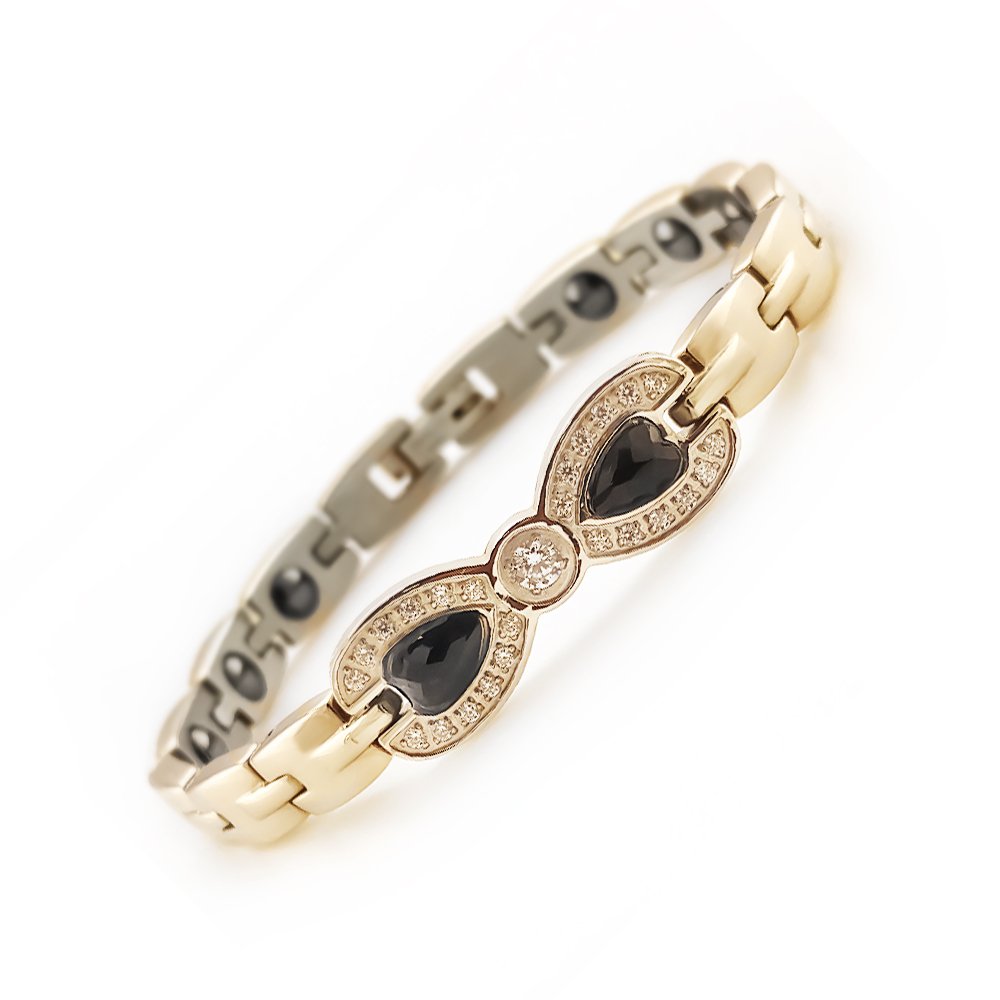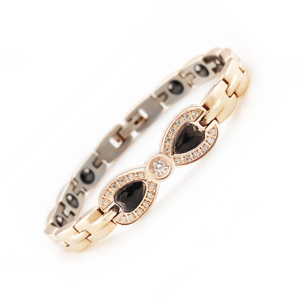 Surrounded by 12 zircons in the large black water in front, symmetrical to the left and right, with big zircon in the middle, it is an infinite mark.