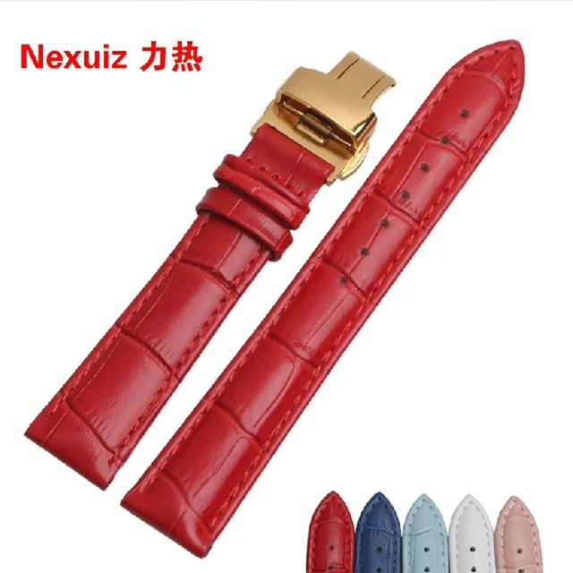 [해외]새로운 도착 12 14 16 18 20 미리메터 가죽 시계 스트랩 골드 디플로 팔찌 시계 밴드 레드 스티치 손목 여성 시계