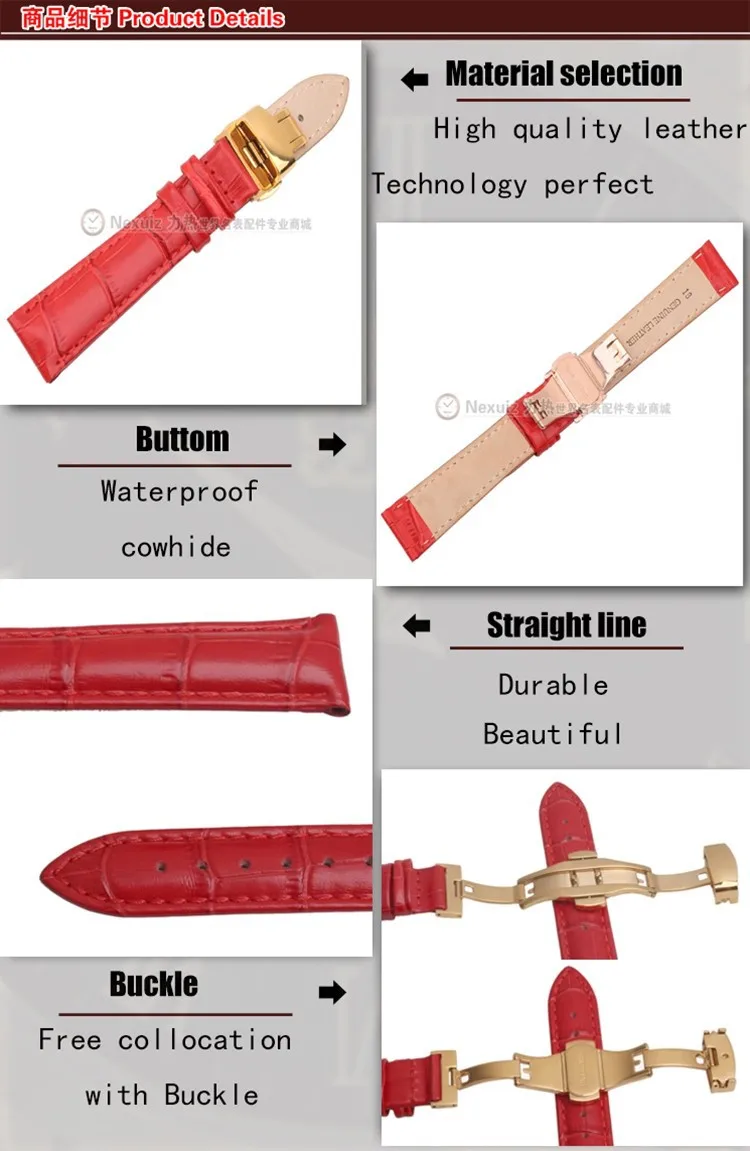 새로운 도착 12 14 16 18 20 미리메터 가죽 시계 스트랩 골드 디플로 팔찌 시계 밴드 레드 스티치 손목 여성 시계