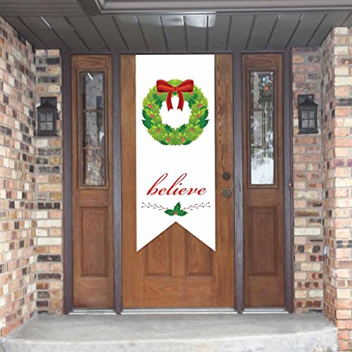 Studio : VictoryStore Publisher : VictoryStore Binding : Kitchen Product Description Christmas door decor is the perfect finish for a well decorated yard for the holidays.Vinyl Door Banner measures 10'x2', Fold over top of the door to cover both the inside and outside of the door. Full color, digital graphics make this door banner a work of art that you can use and reuse for years to come. Your Christmas door decor comes with grommets at the bottom on the outside and inside so you can attach it to your door however you see fit (ribbon, string, elastic). 0