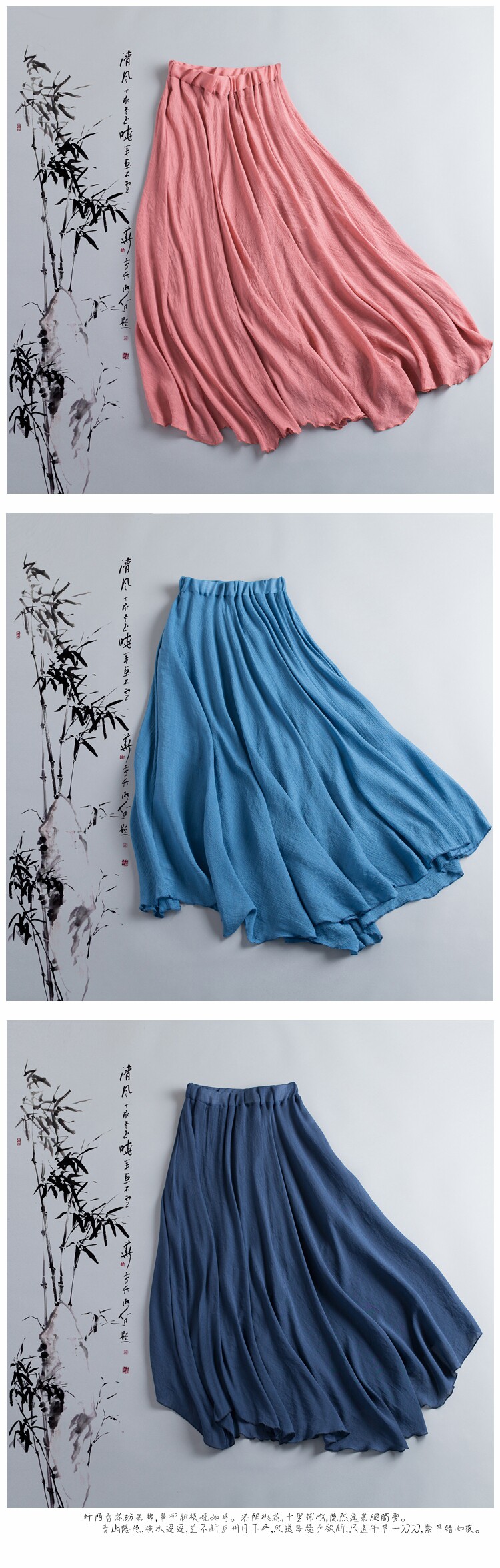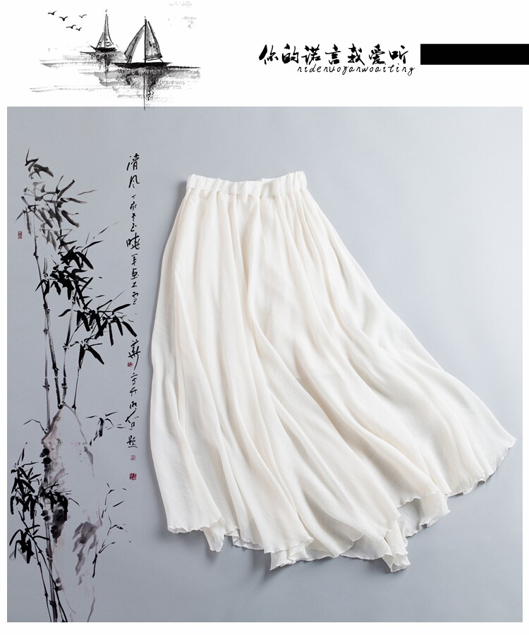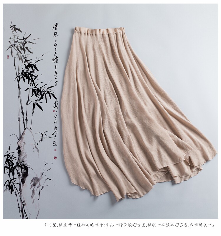 中国风复古纯色半身裙