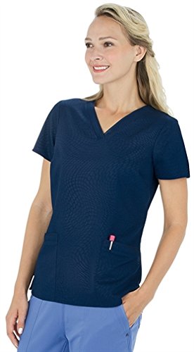 Purple Label Women's "Amanda" 2266-STS V-Neck Embossed Top by Healing Hands Scrubs- Navy- S