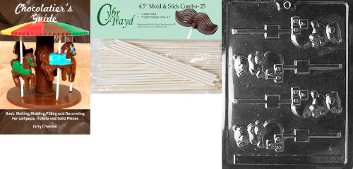 Cybrtrayd 'Bears on Blocks Lolly' Baby Chocolate Candy Mold with 25 4.5-Inch Lollipop Sticks and Chocolatier's Guide
